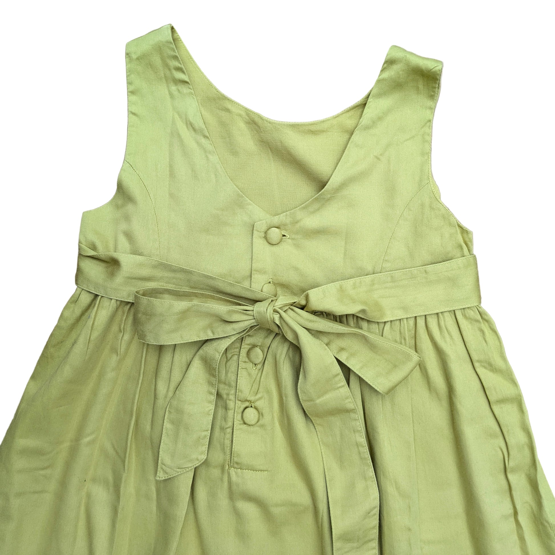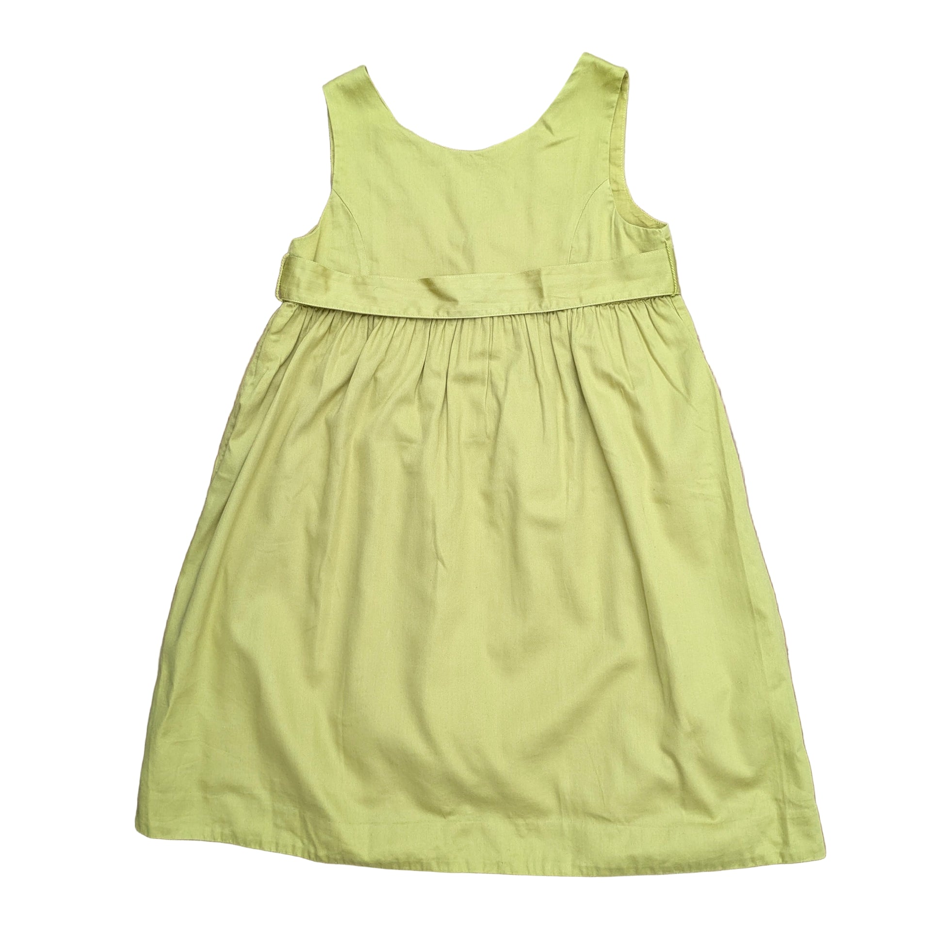 Cotton dress with lovely details in a fun yellow-green. Empire waist.